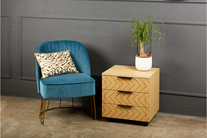 Всё это успешно совместит в себе наша новая прикроватная тумба из высококачественного ЛДСП и шпонированного МДФ с фрезеровкой. Три выдвижные ящика не только вместительны, но также предусмотрительно беззвучны: открывая необходимый ящик, вы не разбудите других членов вашей семьи. Ножки выполнены из натурального дуба, поэтому она будет крепко стоять на ногах и прослужит долгую службу на страже вашего сна и спокойствия.